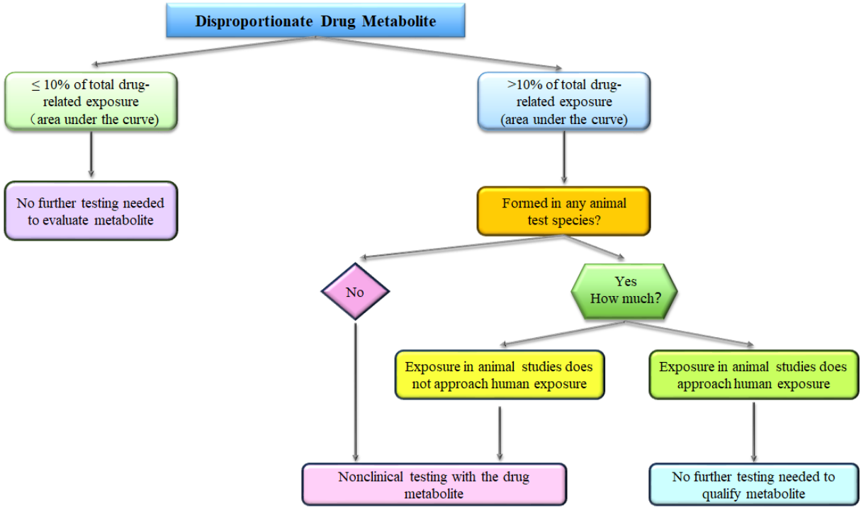 准确定量人体循环中代谢产物的暴露水平。若其暴露量超过总药物相关物质暴露量的10%(特定阈值),则需启动针对性的非临床安全性研究,以评估潜在风险。决策树如Fig 2 所示。