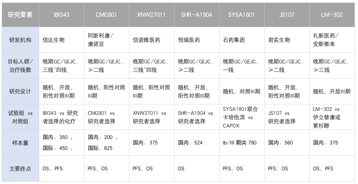表1: CLDN18.2 ADC III临床研究横向对比
