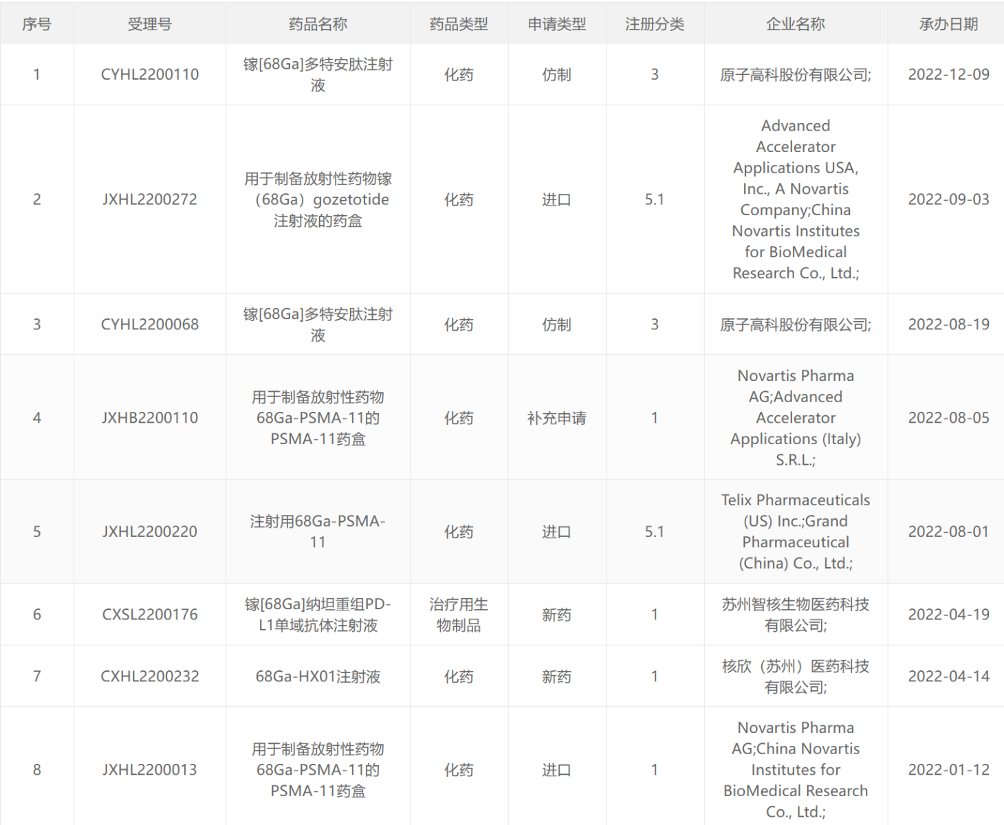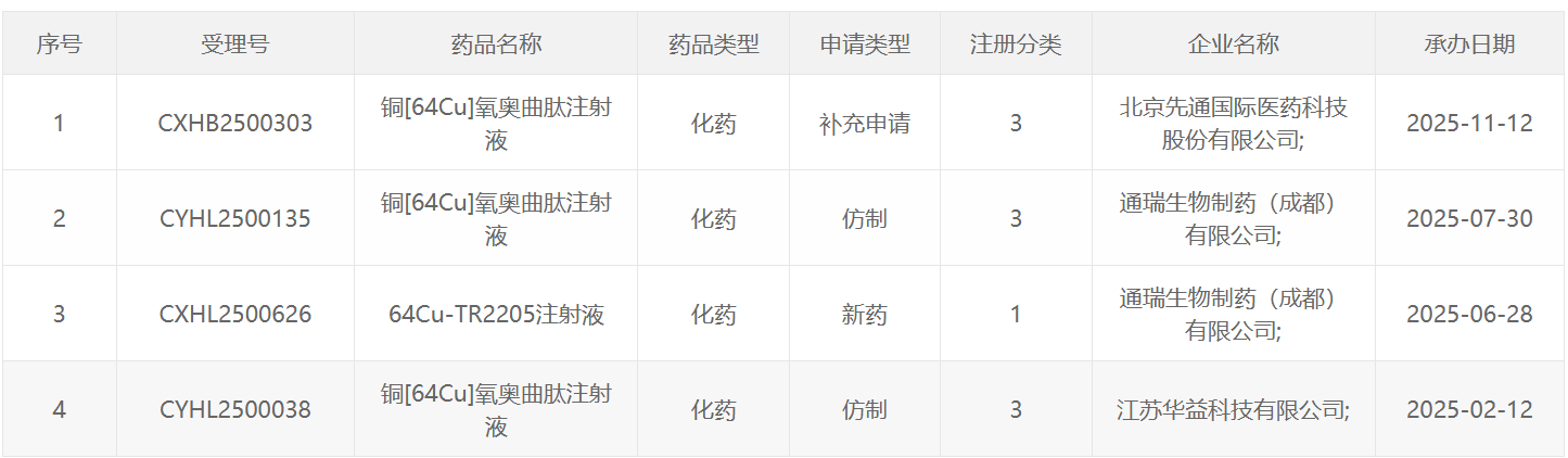 国内申报的许多品种与全球研发热点高度同步,甚至出现并跑态势。越来越多的本土企业开始布局原创靶点探针和国际前沿核素(如α核素、64 Cu等),创新源头能力逐步增强。