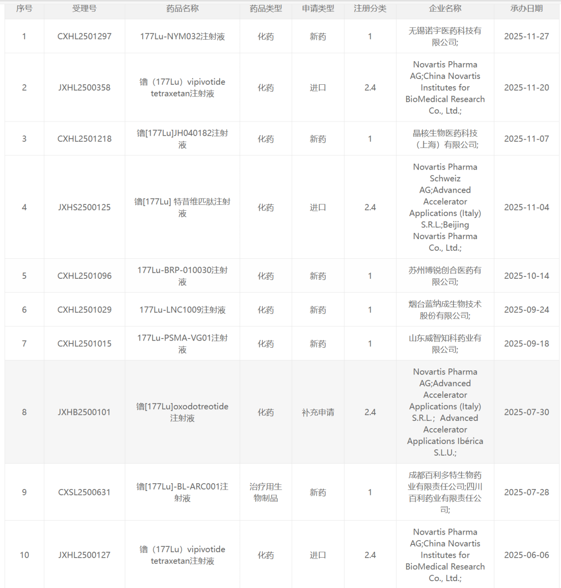 我国对放射性药物实行严格的监管,其注册申请需经过CDE的技术审评。CDE的受理情况,尤其是逐年变化的品种、数量与结构,是洞察行业创新能力、技术风向和市场潜力的晴雨表。分析2019-2025年的数据,可以清晰地看到中国放射性药物正从跟随模仿走向并行引领,从单一诊断走向诊疗一体化,从个别品种突破走向平台化、多元化发展的全新阶段。