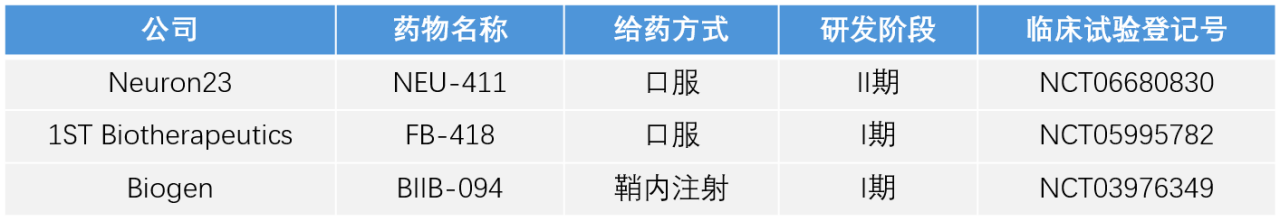 - KM-819为FAF1蛋白抑制剂,通过抑制神经细胞凋亡发挥神经保护作用,目前正在开展 I/II期临床试验。