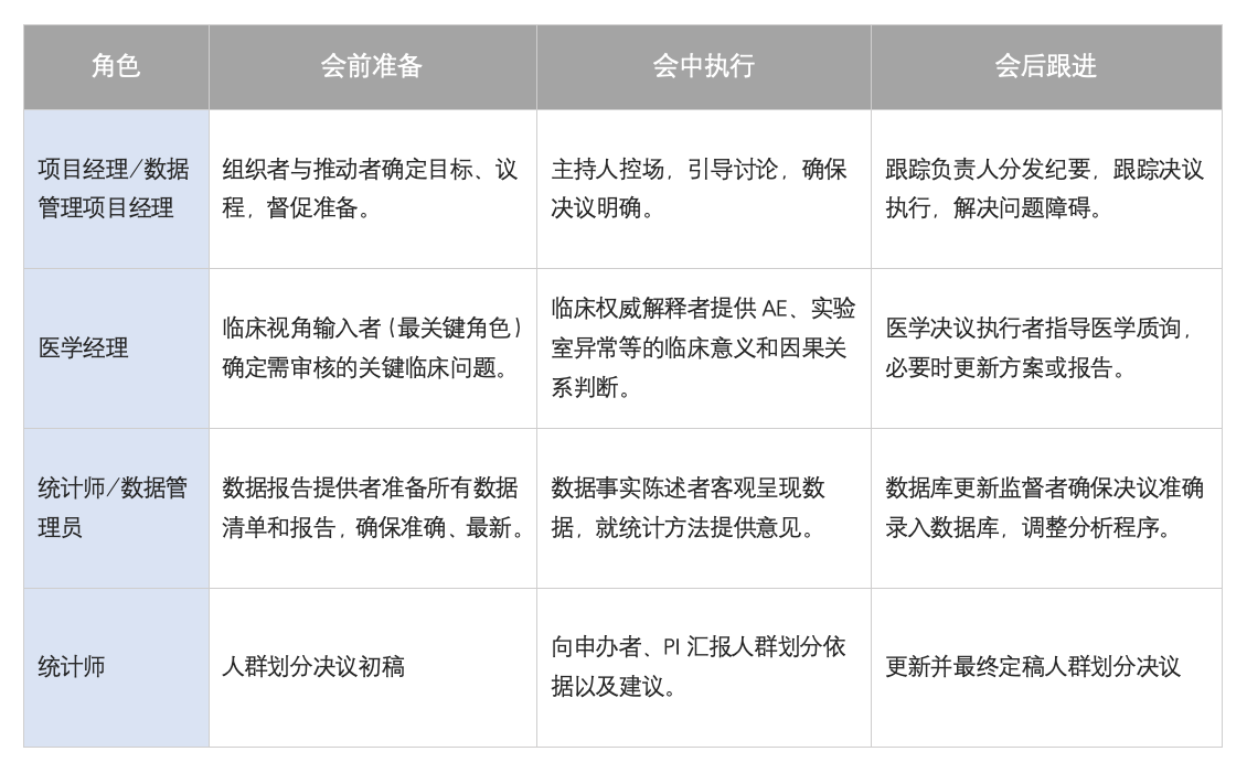 由数据管理/统计团队准备核心材料,其关键是“数据清单”——将海量数据中需人工判断的特定问题点筛选出来,集中讨论(详见第四部分)。