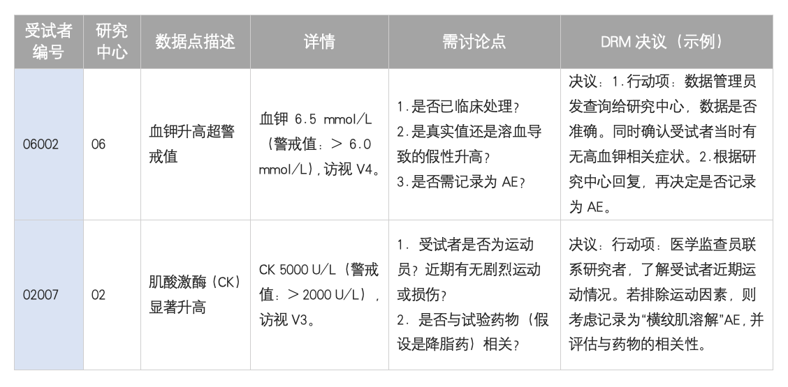 数据管理项目经理提前将议程、数据清单和报告分发给所有参会人(医学,统计师,申办者,研究者),确保会前充分审阅,如参会人审核后需要更新数据,则可以在会前更新材料。