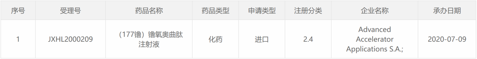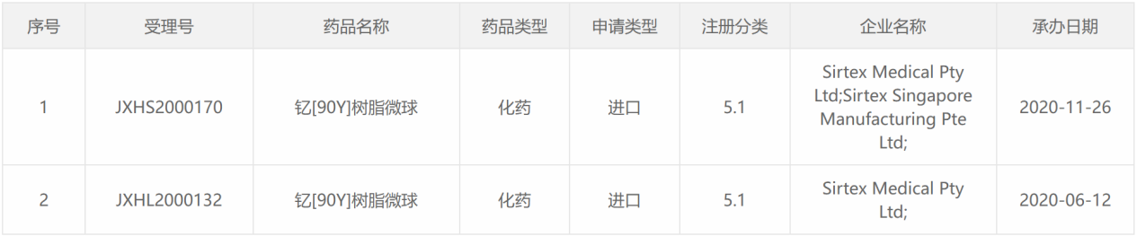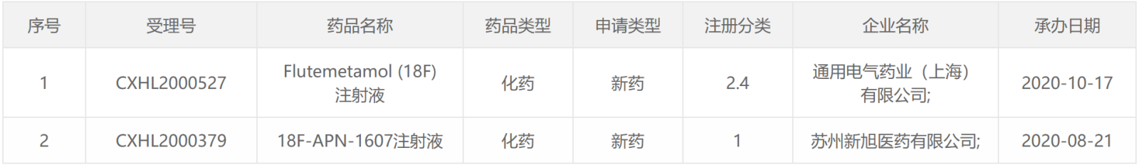 2020CDE受理的放射性药物