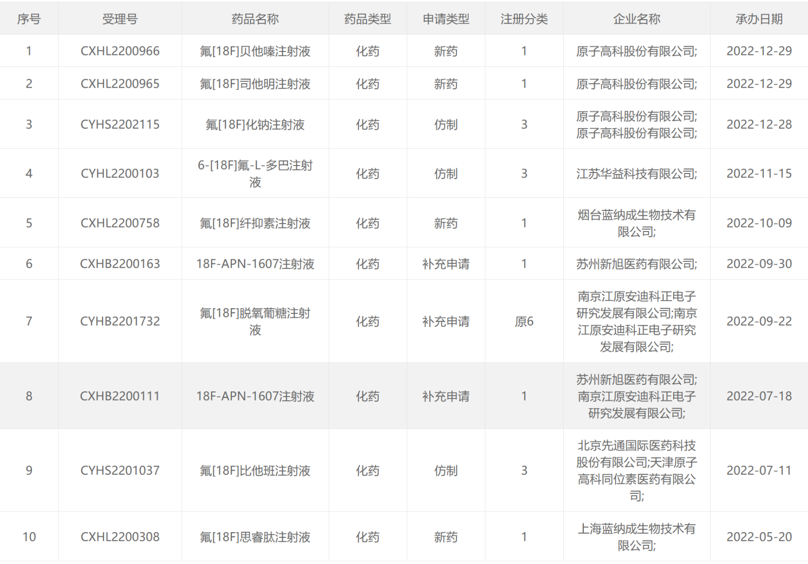 2022CDE受理的核药