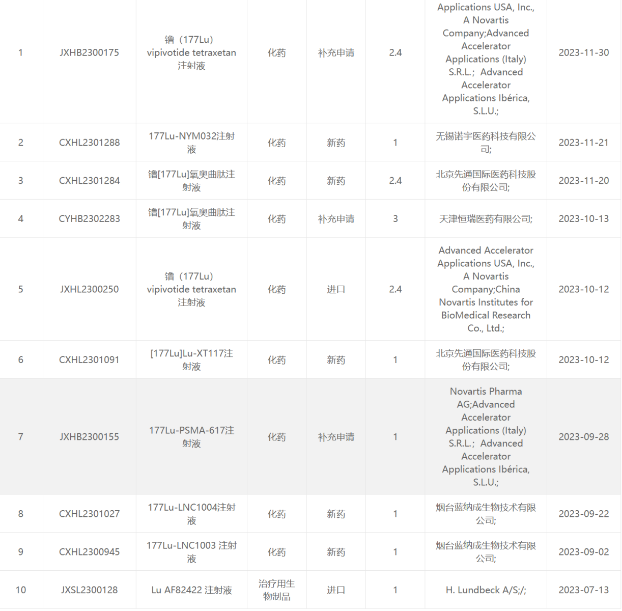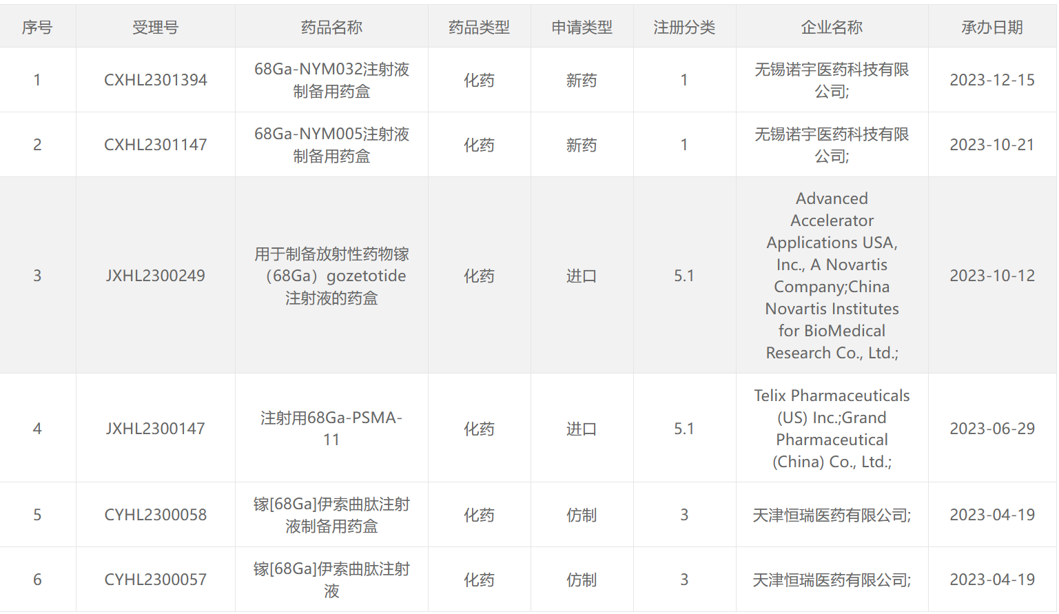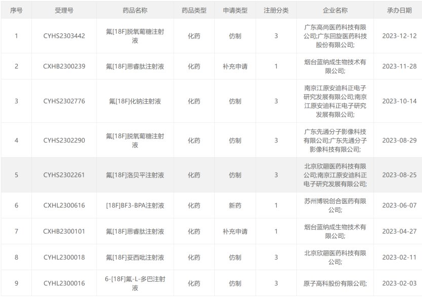 2023CDE受理的放射性药物