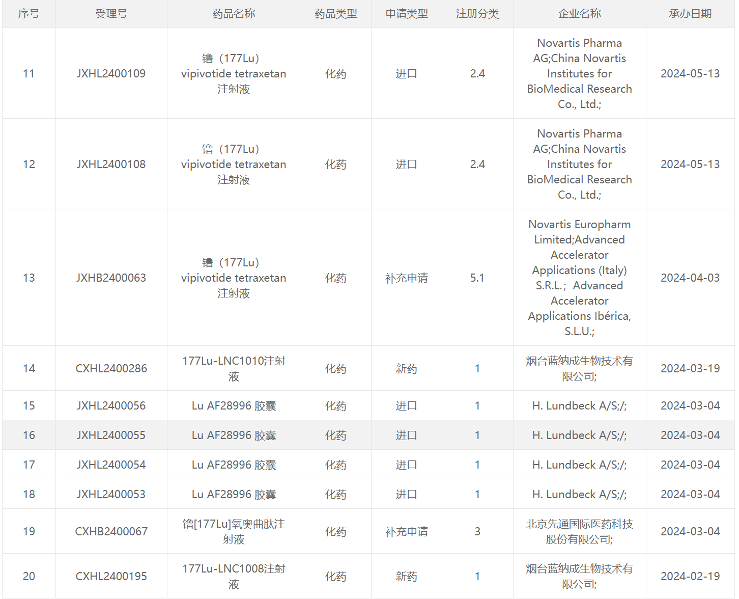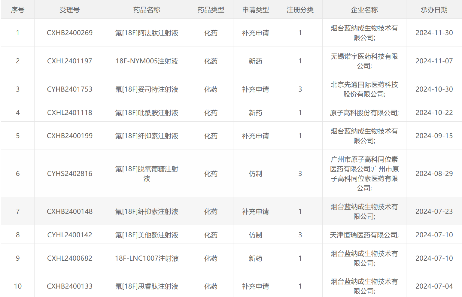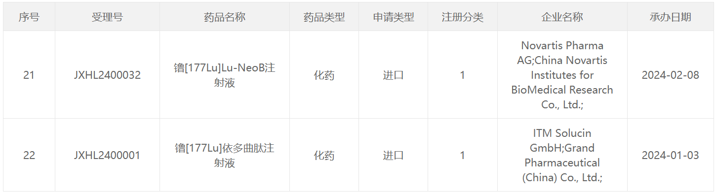 2024CDE受理的放射性药物