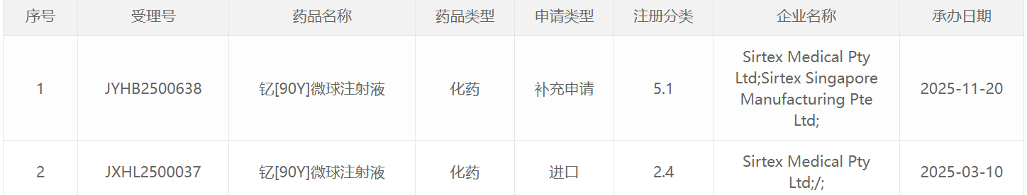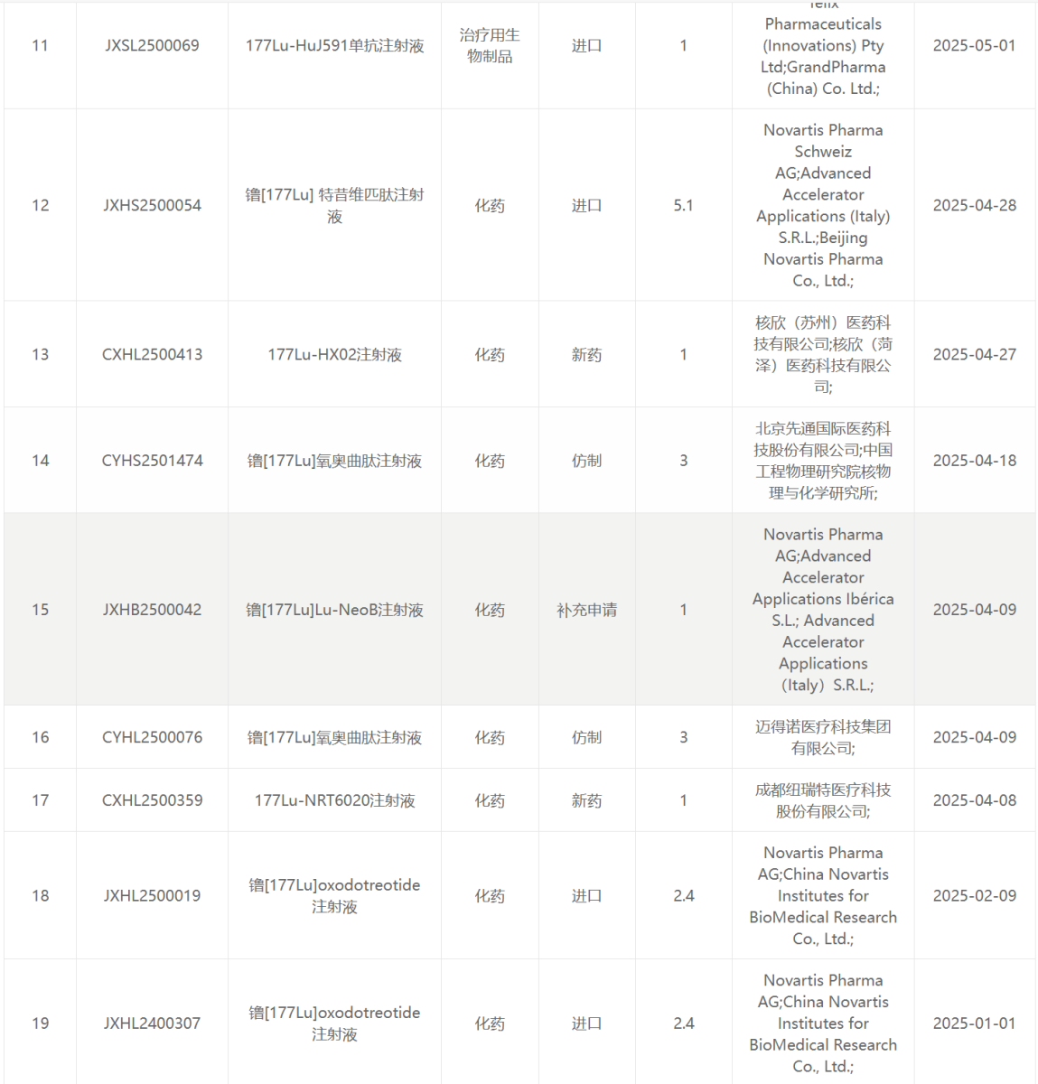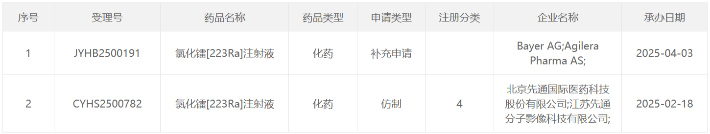下附2019年至2025CDE受理的放射性药物列表