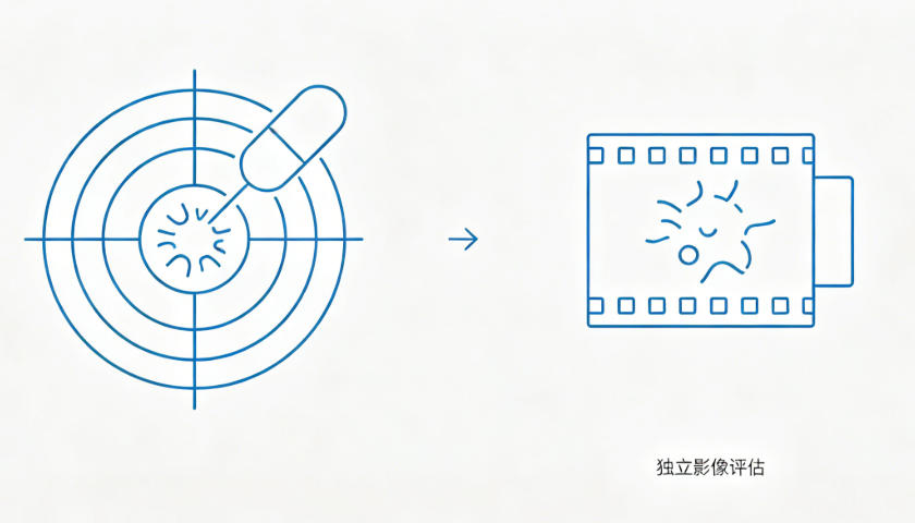 用于筛选目标患者、判断肿瘤分期、评估药物疗效、监测治疗不良反应。通过独立影像核查(BICR),降低评估偏倩,确保数据可靠。